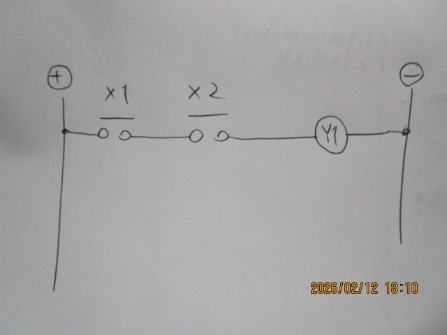 X1とX2の接点が両方ともONになったら、Y1出力をONにせよという意味です。