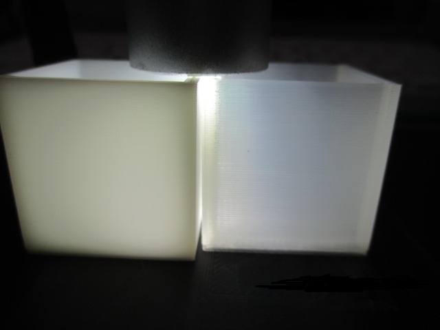 「白」と「透明」のPLAフィラメントで同じ形状の物を作りました。